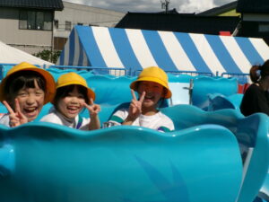 ミラージュランドでは、グループの友達と「次はどれに乗る?」と相談しながら、仲よく活動していました。乗り物から子供たちの楽しい笑い声が響き、たくさんの笑顔が生まれました。