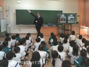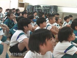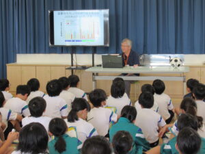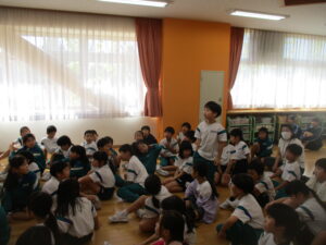9月24日(水)射水市環境課より講師の先生をお迎えし、子供たちが夏休みに取り組んだ「環境チャレンジ10」の結果についてお話をしていただきました。