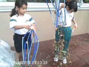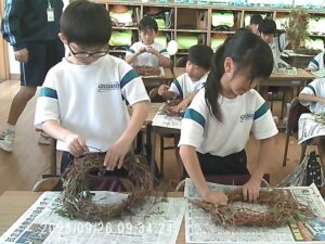 9月26日(金)の1・2時間目にあさがおのつるを使ってリースづくりをしました。