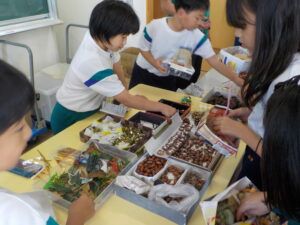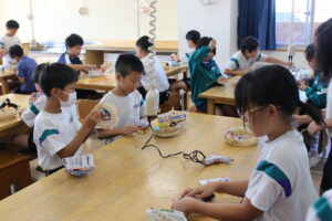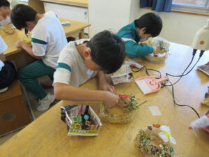 10月10日(金)学校応援ボランティアの方に来ていただき、へちまを土台にしたリースづくりを行いました。