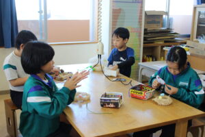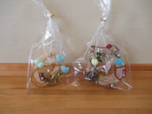 子供たちは好きな飾りを選び、思い思いのすてきなリースに仕上げていました。