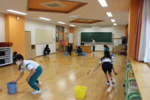 跳び箱、バスケットボールシュート、縄跳び、球拾い、フラフープの5つの競技に参加し、最高記録を目指しました。
