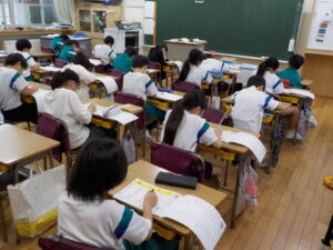 各学級では、算数、理科、書写、外国語等、各教科の学習に取り組んでいます。