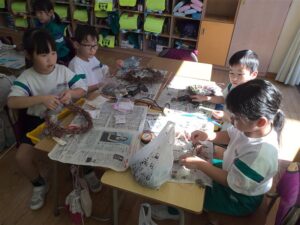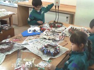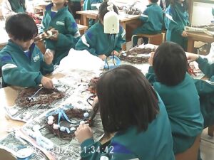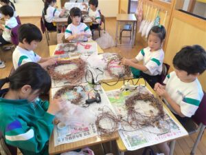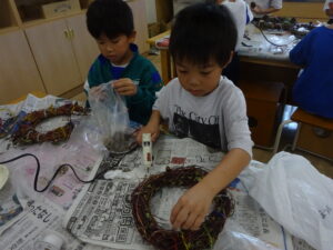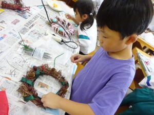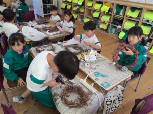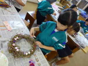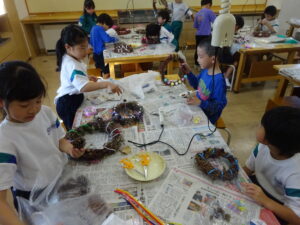 自分だけの特別なリースをつくるために子供たちは真剣に取り組んでいました。