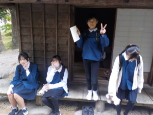 民家園では大きな合掌造りの家を見て、「初めて見た」「思っていたよりも大きい」等の感想を口にしていました。