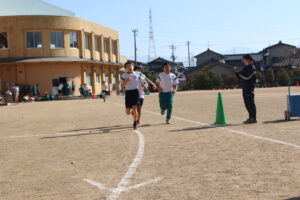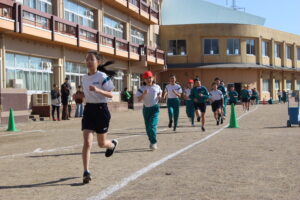 走っている子に「がんばれ!」「あと一周だよ!」と応援する声が聞こえていました。また、来ていただいた保護者や地域の皆様からも声援を受け、ゴールまで走り切ることができました。温かいご声援、ありがとうございました。今回の経験を今後の様々な活動に生かしていきたいです。