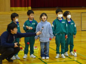 2月26日(木)に射水おおぞら保育園・大島つばさ保育園・大島南部保育園の3つの保育園から年長の皆さんを招き、交流会を行いました。