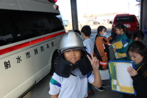 11月7日(金)終日校外学習を行いました。午前中は射水市消防本部を訪問し、通信指令室の役割や消防署の設備について見学させていただきました。私たちの安全なくらしを守るために、消防士の方々が24時間体制で働いていることや1分1秒でも早く現場へ向かえる工夫について学びました。