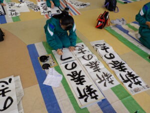 今年の字は「新春の志」です。とめ、はね、はらいや、字のバランスや筆の使い方等に気を付けて書いています。