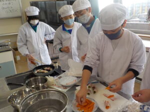 家庭科「任せてね、今日の食事」の学習で調理実習を行いました。