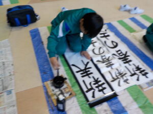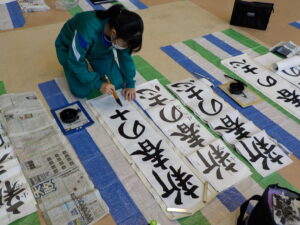 今年の字は「新春の志」です。とめ、はね、はらいや、字のバランスや筆の使い方等に気を付けて書いています。